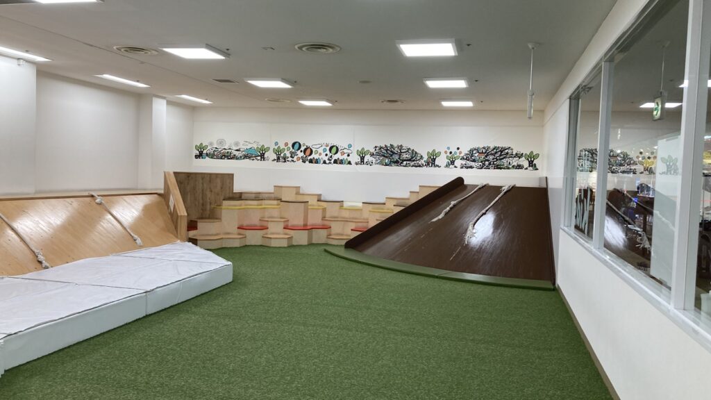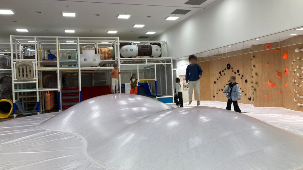 ふわふわドームやアスレチック、滑り台、お絵かきコーナーなど、子どもが体をしっかり動かして遊べる遊具がいくつもそろっていました。