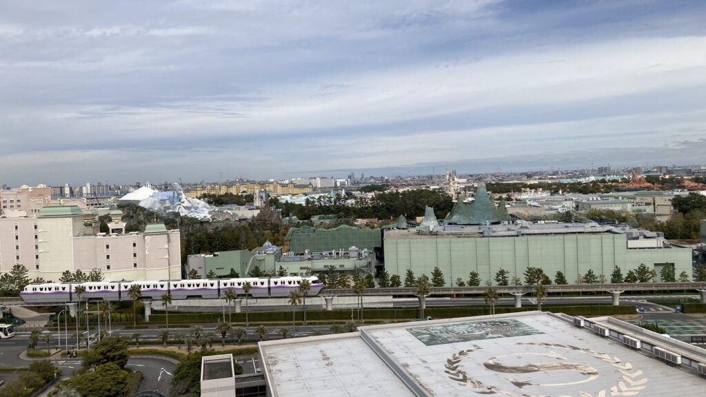 そのため、ランドが少し見える窓際の席に通してもらい、パークを眺めながら軽食をいただきました。